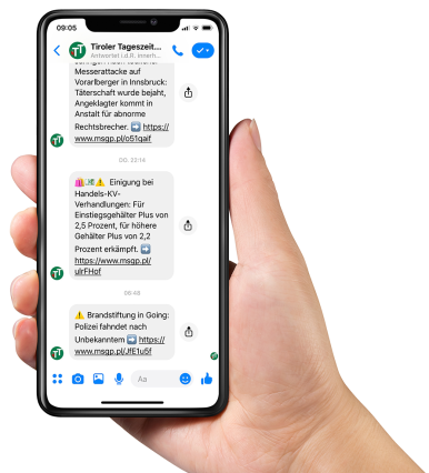 Der TT-Messenger-Service der TT ist kostenlos. Und garantiert: Die Daten werden nicht für Werbezwecke an Dritte weitergegeben.